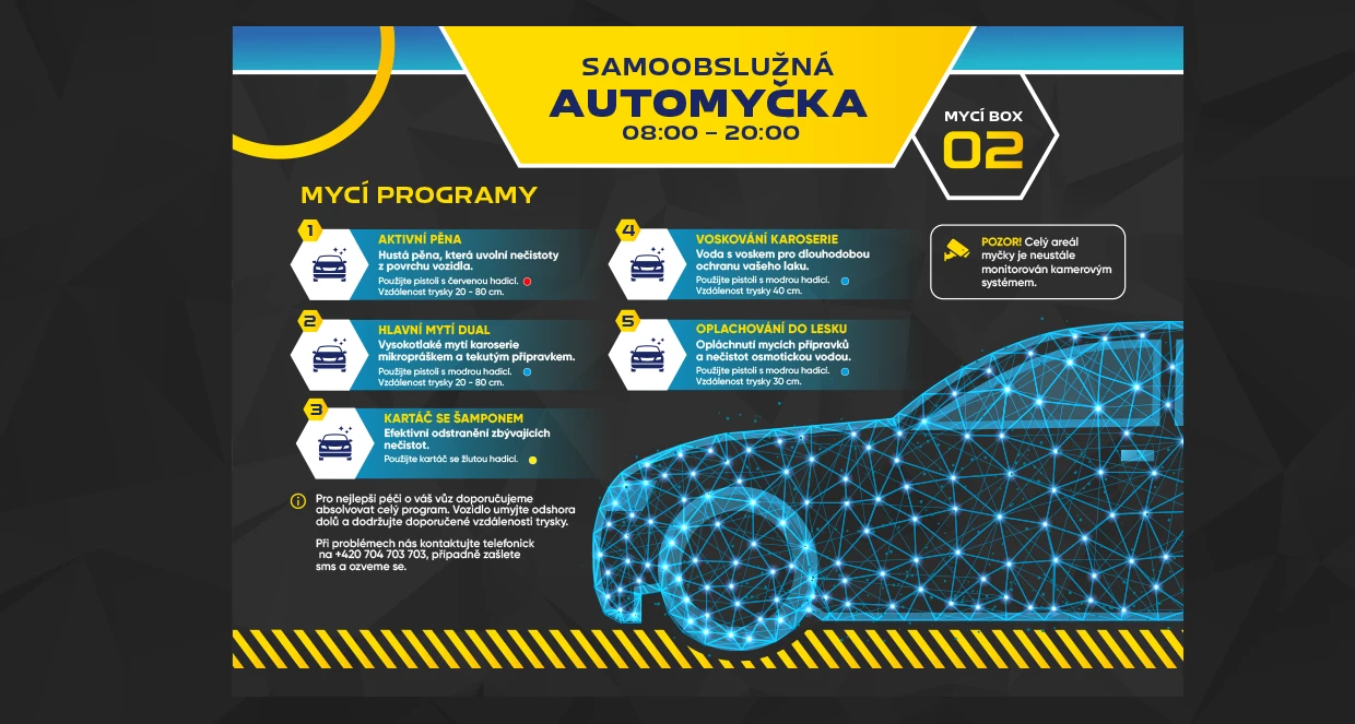 Moderní automyčka v Děčíně, pro kterou jsem navrhl kompletní vizuální řešení. Od loga a vizuální identity až po samotný design myčky a jejího prostoru. Každý detail vznikal s důrazem na funkčnost, přehlednost a estetiku. Výsledkem je jednotná a profesionální značka, která konzistentně funguje v online i fyzickém prostředí.
