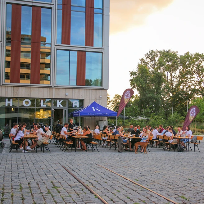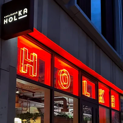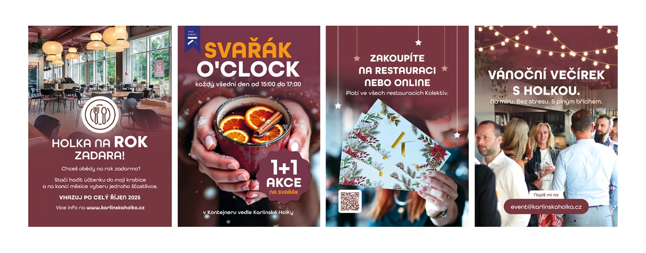 Restaurace, jejíž název vznikl spojením počátečních slabik Holešovic a Karlína a odkazuje na polohu u Štvanické lávky, která tyto dvě čtvrti propojuje. Pro podnik jsem vytvořil kompletní vizuální identitu. Cílem bylo propojit moderní gastronomii s odkazem na českou klasiku v otevřeném, vzdušném prostoru, jenž reflektuje současný životní styl.