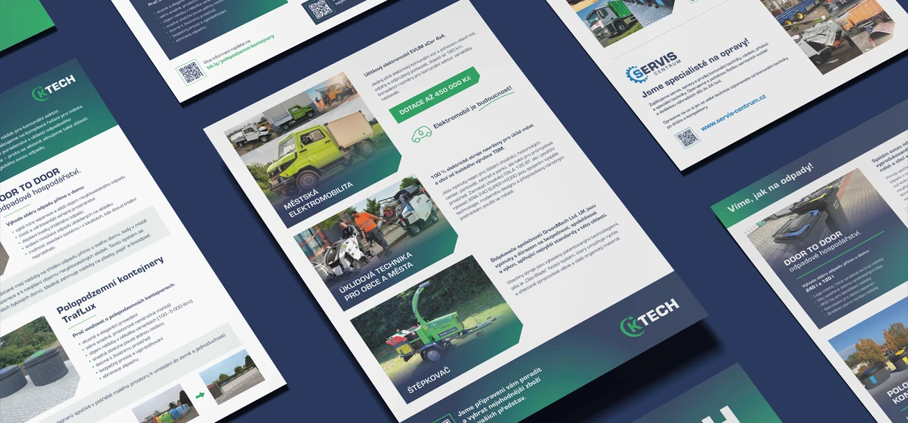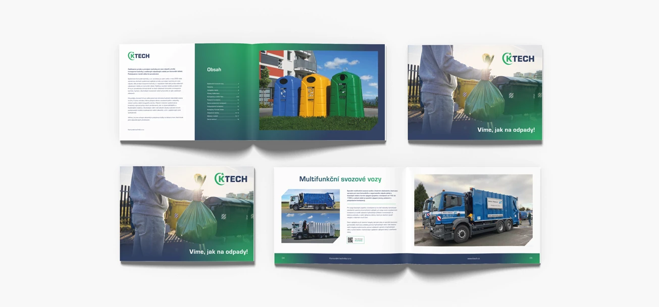Pro Komunální technika holding, pod kterou spadají značky KTECH a Servis‑centrum CZ, jsem vytvořil kompletní rebranding včetně logomanuálů, tiskovin a online grafiky. Ktech Holding je silná průmyslová skupina zaměřená na prodej a pronájem komunální techniky pro svoz odpadů, transportní techniku a související zařízení, přičemž Servis-centrum zajišťuje servis, opravy a dodávky náhradních dílů pro široké spektrum specializovaných vozidel a techniky.